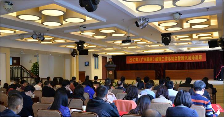 1月24日至25日, 2017年《广州保密》编辑工作总结会暨通讯员培训班在市社会主义学院召开,市直各单位及各区国家保密局共140多人参会,这是一次全市各单位和各区国家保密局一起回顾《广州保密》成长历程、共商未来发展的会议。市国家保密局局长刘苑珊、副局长李建明、朱来山以及副巡视员黄先汉、李瑞忠参加了总结会,并对2017年积极投稿单位、优秀通讯员、优秀文稿作者及市连续性内部出版物2016年好新闻获奖作者颁奖。总结会回顾了《广州保密》创刊25年来的成长历程,对2017年的编辑工作进行了总结;培训班邀请了三位在刊物编辑、法治宣传、报刊出版领域的专家为通讯员授课。